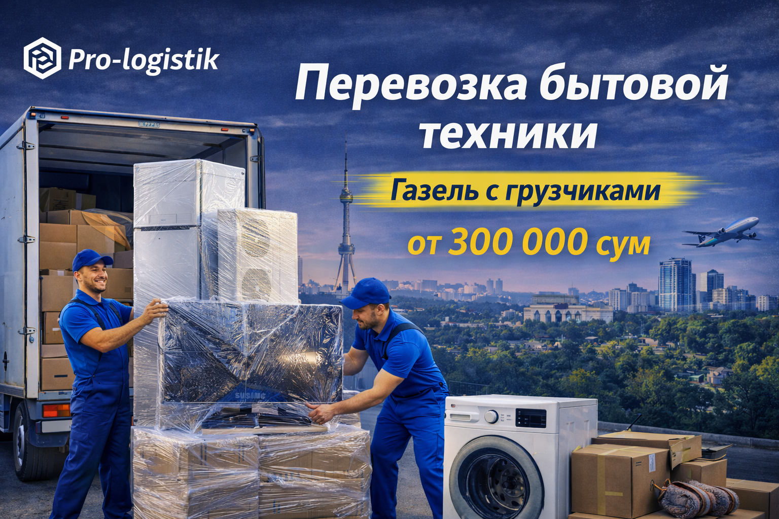 Газель с грузчиками для перевозки техники по Ташкенту и области: аккуратная погрузка, защита и фиксация. Цена от 300 000 сум.